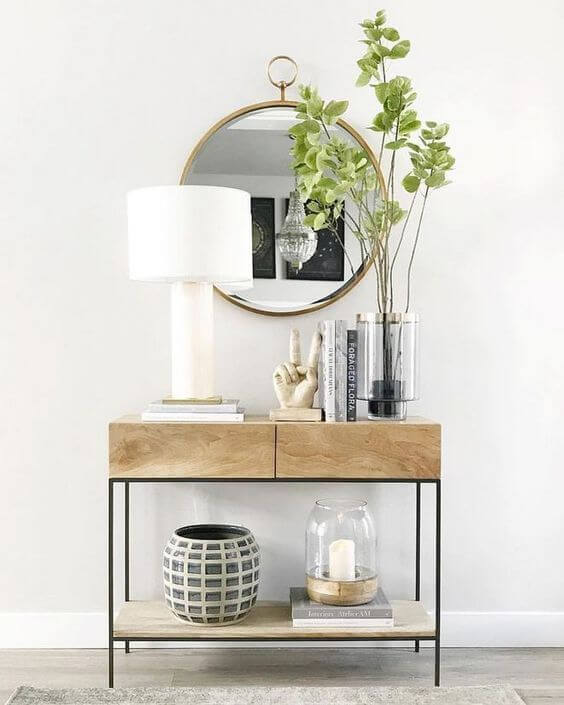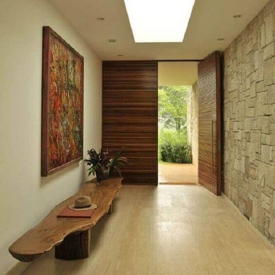 A função anterior de hall de entrada era de suporte para a chegada ao lar, ou seja. Ao entrar em casa, tínhamos um ambiente de recepção onde era colocado um aparador e um quadro bonito e ali era onde você deixava sua chave e carteira.