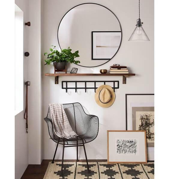 Se couber é importante ter uma cadeira nesse espaço para que você possa sentar para tirar os calçados ou mesmo apoiar sacolas quando entrar.